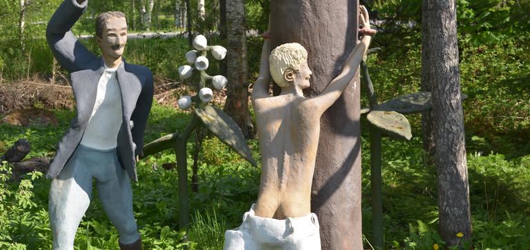 Parikkalan Patsaspuiston rehevästä puutarhasta löydät satojen hätkähdyttävien betonihahmojen mystisen...